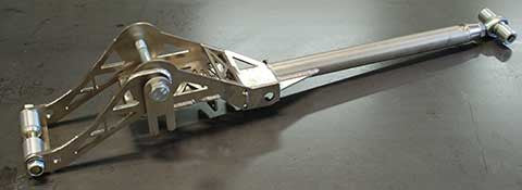 These replace the factory stamped and welded sheet metal control arms with a high strength and stiffness design. It incorporates a Teflon Lubricated Spherical Bearing to replace the factory rubber bushing that connects the trailing arms to the chassis. By using a spherical bearing over a rubber or polyurethane you are increasing the amount of compliance the rear suspension has in side to side roll but decreasing the compliance in front to rear roll. The overall effect is you have a more immediate response to engine and brake torque with better rear grip and traction. Keeping the rear suspension compliant in side to side roll also known as body roll is critical in the performance of a solid axle rear suspension.